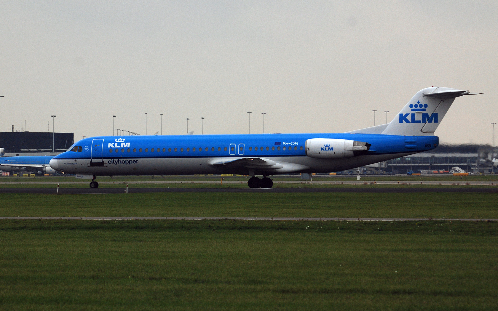 KLM Cityhopper Fokker 100 (PH-OFI) is taxiing into position on runway 18L. October 19, 2008. No comments yet.