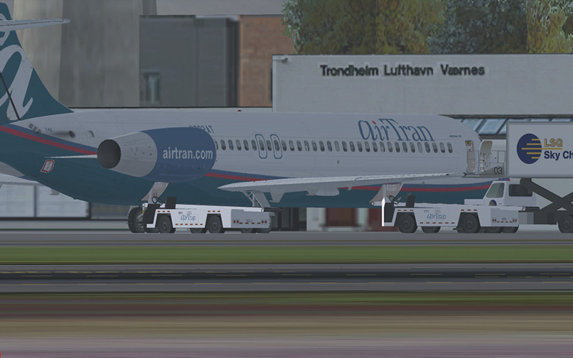 This Boeing 717 is the only freeware product of Jet City Aircraft. Like their payware products, this aircraft is detailed and flies very well. Many liveries are available on their support page. All the usual animations are present, including some special animations: Baggage carts and catering trucks appear when the doors are opened.