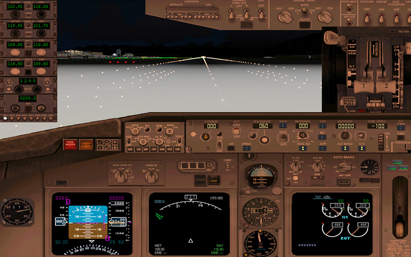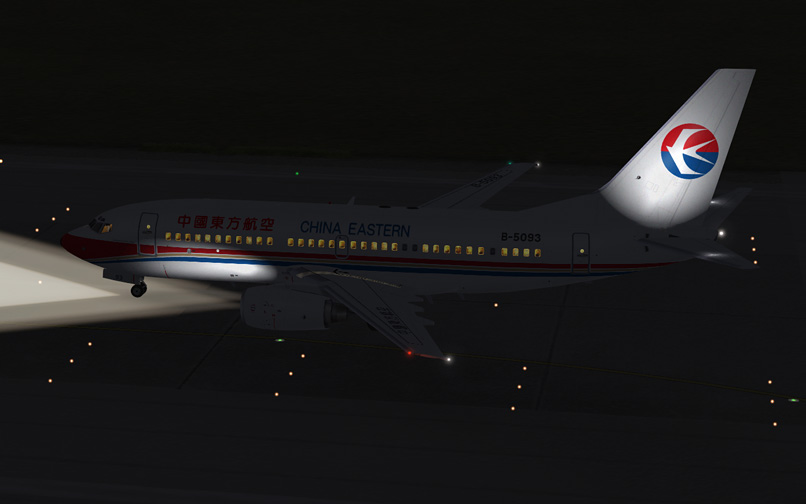 Like all aircraft in the Fly into the sky! package, this Boeing 737-700 is a beautifully designed aircraft and represents its real world counterpart well. The package contains only one Boeing 737-700 livery: China Eastern Airlines. The 2d panel is frame rate friendly, but doesn't have a FMC. For full IFR flights, you need to use the default Carmin GPS unit. ILS Approaches are no problem, just enter the course/ILS frequency and use the LOC and APPR buttons. The virtual cockpit is a bit simple, only the most important systems are modeled. But it looks nice and is frame rate friendly too. There is also a wingview model for even better frame rate.