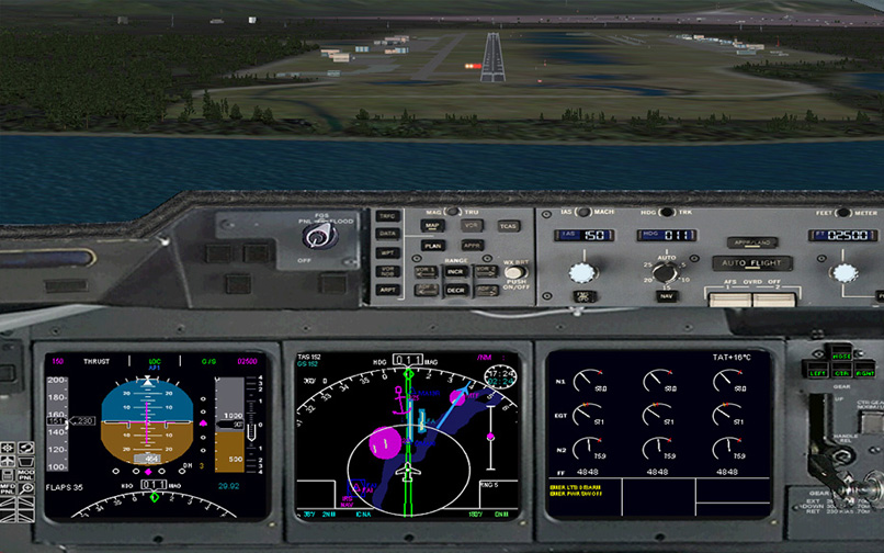The 2d panel looks realistic, although not all systems work exactly like on the real MD-11. For example, the navigation display (EHSI) looks more like the default garmin gps system than the EHSI of a real MD-11. This is of course a minor detail, but I guess it's worth mentioning. The FMS isn't realistic either, though it works fine and is very easy to use because your IFR flight plan will be automatically loaded. The overhead panel looks nice, with most systems functional. Many cockpit systems are modeled like air, electrical, fuel and hydraulic systems, GPWS with typical McDonnell Douglas callouts, realistic multifunction displays, etc.