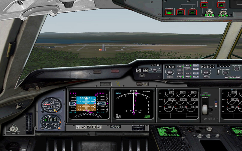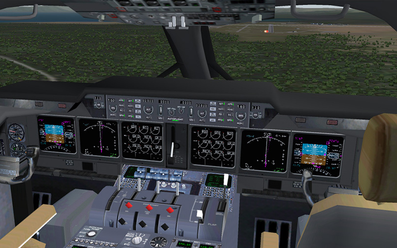If you like realistic simulation of cockpit systems, you'll be disappointed with this package. The 2d panel looks simple and doesn't look like a MD-11 panel. Some of the gauges that are used are default gauges borrowed from various default FS2004 panels. The virtual cockpit looks simple as well, the same default gauges and low quality textures. A simple virtual passenger cabin is modeled in the virtual cockpit, but the wings are not visible.