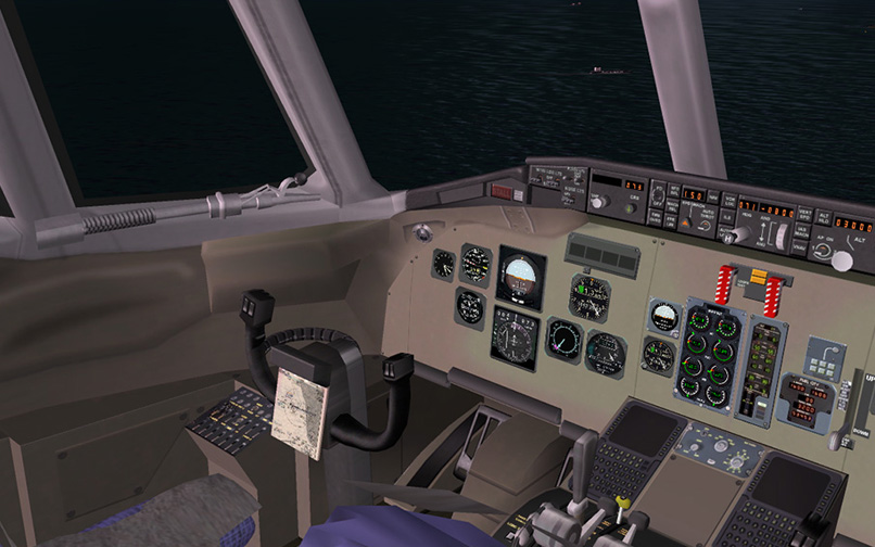 The NBP MD-80 is a simple, but frame rate friendly model. All the usual animations are present. The flight dynamics are ok, but a lot other things are not. The main landing gear is simple, floating on touchdown and doesn't have suspension. Also, the thrust reverse is not very realistic, when the thrust reversers are engaged, N1 is going up all the way to 100% (should be something between 60-70% N1) and the rudder is not very effective. Both the panel and virtual cockpit are very simple and do not resemble the real MD-80 cockpit. The two liveries in the basepack look alright but there are not many other liveries available on websites like the AVSIM Library. This aircraft will not work in FSX because the gauges are too old.