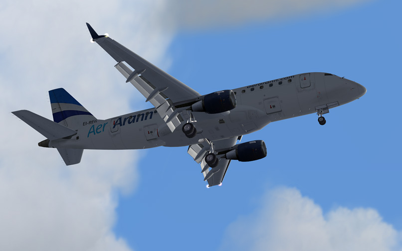 Dreamwings Design is developer of many regional aircraft for FS2004. Their Embraer ERJ-170 is a simple but frame rate friendly aircraft. All usual animations are present plus one opening door. There are no panel, virtual cockpit or engine sounds included. The main landing gear looks ok, but the suspension doesn't seem realistic: the fuselage is not moving up and down with heavy turbulence or a hard landing, but the wheels are.