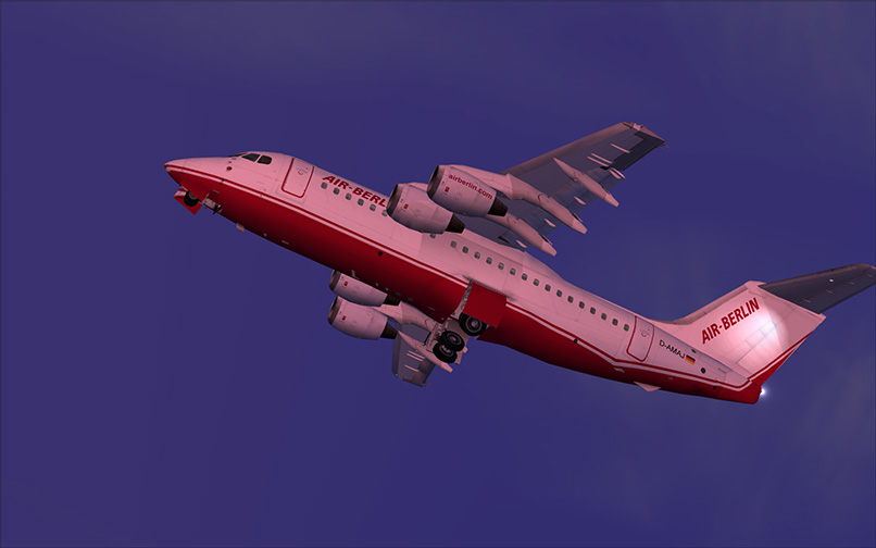 The Eurowings BAe 146 is part of the Eurowings 2004 / Commuter Airliners package that contains many regional aircraft, but is also available in a separate package. The package contains the BAe 146-200, -300 and -300QT (freighter) with or without EFIS cockpit, engine sounds, many liveries, flight planner and load editor.