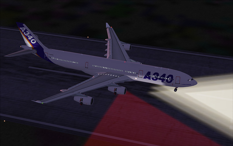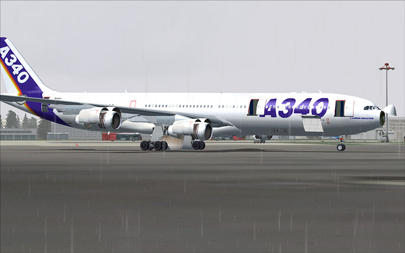 The base package installs the Airbus A340-300 including the Airbus house livery. The exterior looks nice and all usual animations are present. Note that this aircraft was originally developed for FS2002, so it's a bit outdated. The panel looks nice, but the functionality is limited. The virtual cockpit is simple, but it includes the passenger cabin and wingviews. Engine sounds are not included, the default learjet sound is used instead. The animation of the main landing gear is not exactly right: it's the common sinking/floating problem. Liveries are available in the AVSIM Library.