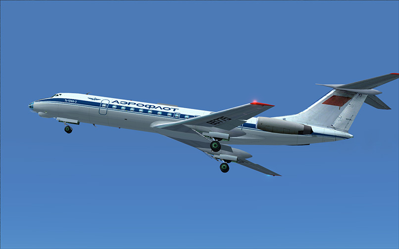 Soviet Classics Simulation (SCS) developed a nice and complex freeware Tu-134A. The package comes with an easy to use installer and includes two liveries: Aeroflot and Perm Airlines. The exterior looks good and all the usual animations are present. The panel is quite complex with many simulated systems, accessible via several sub-panels. The default start up mode is cold & dark, which means that the aircraft is completely shut down. Unfortunately, there is no manual included, so it's not easy to start up all the systems. There is however a short engine start manual available (see the download locations for the link) which also includes a switch overview. That overview is quite handy since all the buttons and switches have Russian text on them and there aren't any English popup tooltips either. Unlike the Project Tupolev Tu-154M, you can save your flight with all systems on and then load it the next time, so you don't have to go through the start up procedure again.