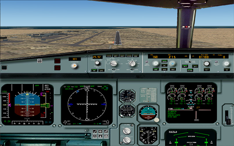 The Gmax Academy Airbus A380 is not a very detailed aircraft, but it comes with a nice panel. The package contains many liveries of average quality. Sounds are not included, the default FS2004 b737-400 sound is used instead. The panel looks nice, but doesn't represent the real A380 cockpit. Many systems are simplified or aren't simulated at all. Still, its a nice panel if you don't give much about realistic systems.