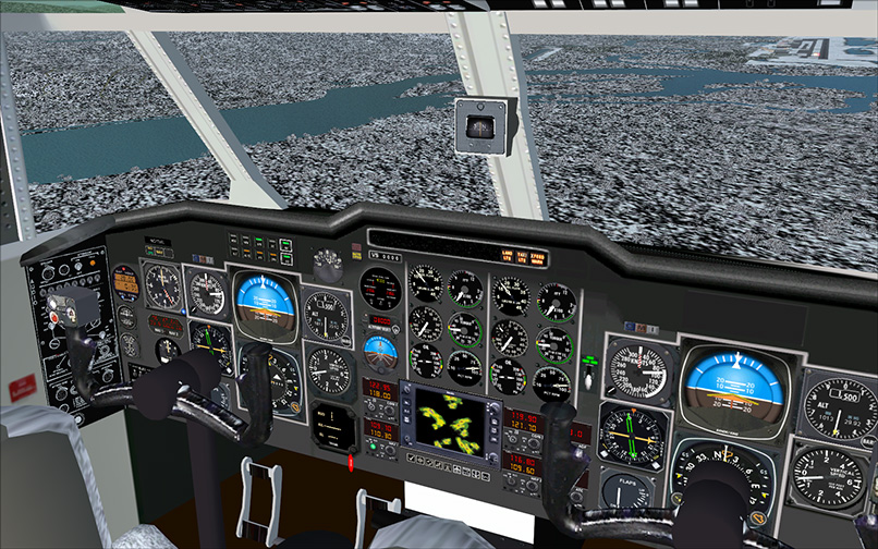 All usual animations are present, although the main landing gear animation could use some improvement. The wheels are sinking in the runway on takeoff and landing. Also, the rudder effect in the air is very limited. This might be due to some kind of yaw damper, which I haven't detected on the panel.