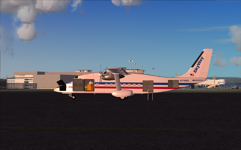 Premier aircraft designs developed this average quality SD3-60 add-on for both FS9 and FSX. The exterior is not so detailed and the textures could be better. The panel is quite nice and includes a fake weather radar. The virtual cockpit is very simple with low resolution 2d textures. A passenger cabin is also part of the vc, which is even more simple. Engine sounds are available as separate download. A freighter model is also available.
