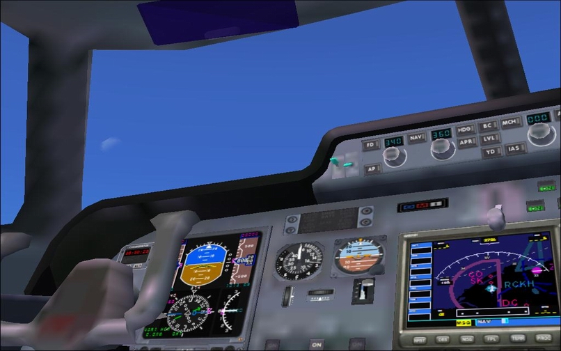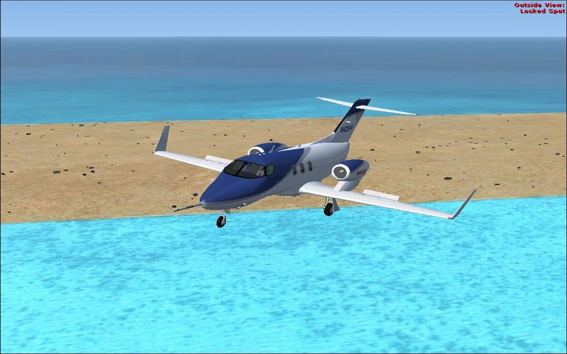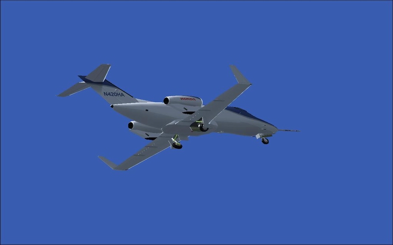 Mitsuya Hamaguchi developed this simple Honda Jet add-on for both FS9, but it also works with FSX. The model is simple, and the textures are okay. The panel as well as the virtual cockpit is very simple. The doors will not open even if you command it to. The wings are modeled into the VC so there is also a wingview. Sounds are not included, the default Learjet sounds are used.