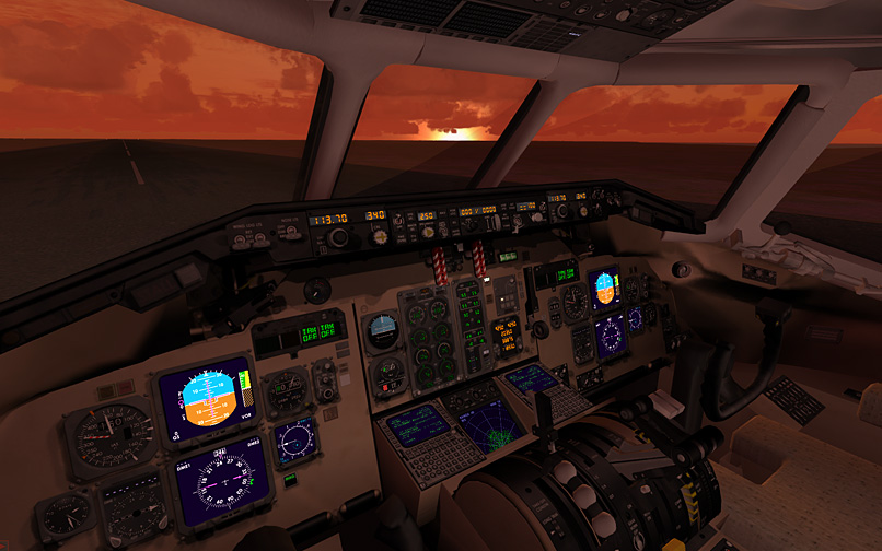 If you don't like to learn all the systems at first, you can choose one of the start modes, like 'cleared for takeoff' which configures the aircraft automatically for you up to the takeoff flap setting. Advanced instruments and functions like the flight computers, weather radar and autoland feature are all simulated. Buttons and knobs that are clickable on the panel are clickable in the virtual cockpit as well. So you can do an entire flight from within the vc. Interesting detail: the windows on the fuselage are not textures, but you can see right through the aircraft and see the interior. It looks more realistic compared to flat textures.
