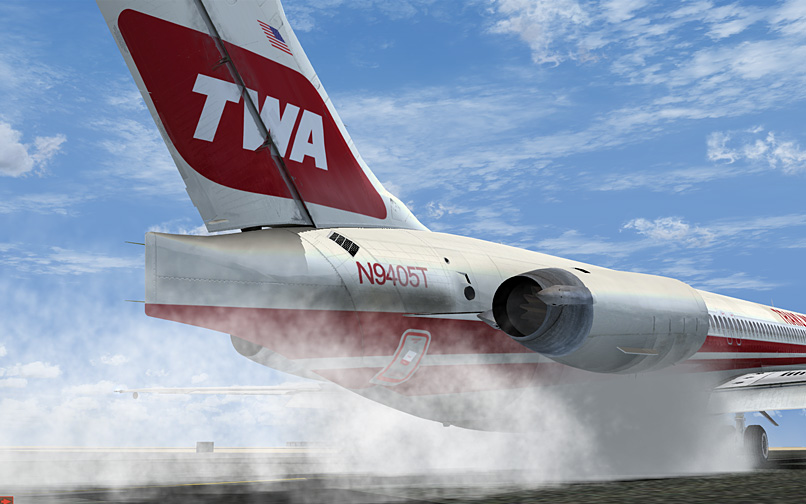 Unlike the Super 80 package, this version is for FSX only. One very interesting difference is the option to use high resolution textures. These are developed by McPhat Studios and can be downloaded from their website. Right now there are 2 UHDT (Ultra High Definition Textures) liveries available: American Airlines and Trans World Airlines. These liveries are 4 times sharper than regular liveries (2048x2048 pixels textures instead of 512x512 pixels). The results are insane detailed liveries (see screenshot 6 and 7) - without any drop in framerate! A big thanks to the texture artists at McPhat Studios for these 2 pieces, which are by the way freeware!