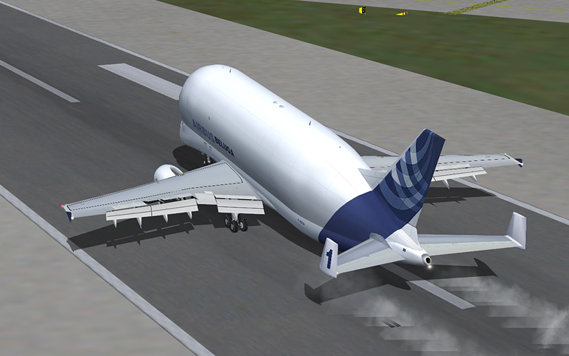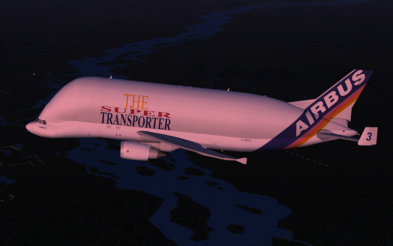 This Airbus A300 package contains the A300B4-608ST Super Transporter, also known as the "Beluga". The package contains 4 different liveries: The Airbus No.1 2006 (new house colors), the Airbus No.2 2004 (old house colors, "Skylink"), the Airbus No.3 (old house colors "The Super Transporter" titles) and the UPS livery. The exterior is highly detailed and features dynamic shine, dynamic wingflex, opening doors and pushback truck. The big cargo door above the cockpit can be opened, with A320 fuselage visible in it. The interior is a less detailed virtual cockpit and wingview. The virtual cockpit looks nice, but not all systems are modelled, so not all buttons and switches are clickable.