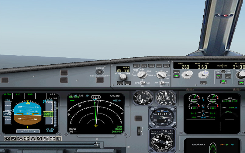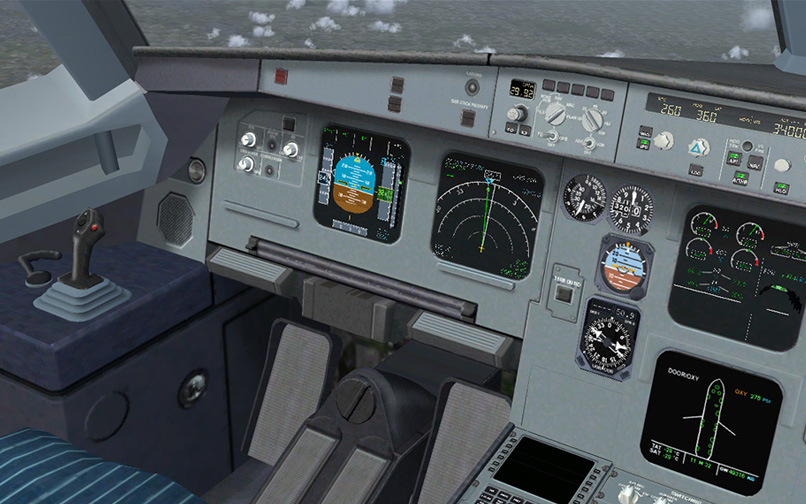 This Airbus A319 is a beautiful designed aircraft. The Fly into the sky! package contains three A319 liveries: Air Canada, British Airways and China Eastern. The 2d panel is framerate friendly, but doesn't have a FMC. For full IFR flights, you need to use the default Carmin GPS unit. ILS Approaches are no problem, just enter the course/ILS frequency and use the LOC and APPR buttons. The virtual cockpit is a bit simple, only the most important systems are modelled. But it looks nice and is framerate friendly too. There is also a wingview model for even better framerates.