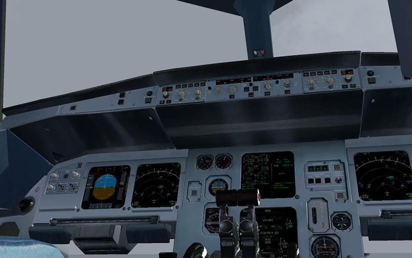 Almost all systems are modeled, accessible from the 2d panel and also from the virtual cockpit (all buttons and handles are clickable). Both the 2d panel and virtual cockpit looks very realistic and the displays are clear and bright. The FMGC (Flight Management and Guidance Computer) is completely modeled, something I haven't seen often in payware packages. Also systems like TCAS and GPWS are modeled, as well as all the systems located on the overhead panel. Even the autoland function works like the real thing, which I haven't seen in many payware packages either. Typical Airbus fly-by-wire systems are also realistically modeled. A weather radar however, is not present.