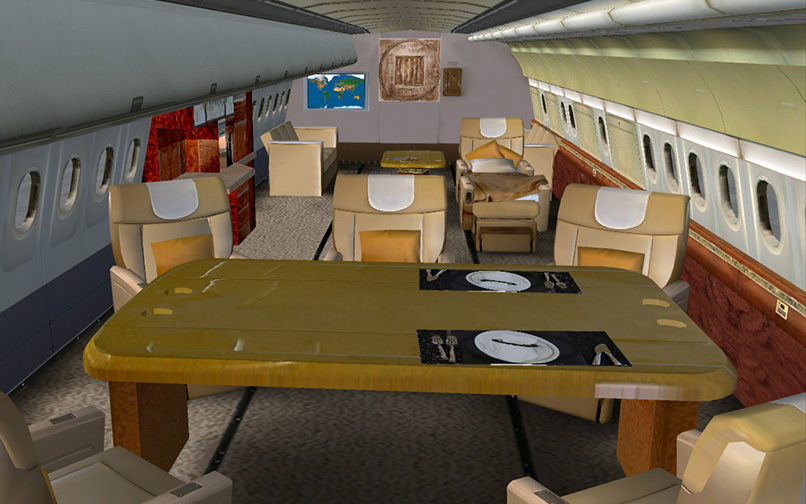 The flight dynamics are very well balanced, although this type of aircraft aren't meant to fly manually. Since you'll fly most of the time by using the autoflight system, it's nice to know that the whole passenger cabin is modeled in the virtual cockpit, so you can sit down, relax and look out one of the windows. The A319CJ (Corporate Jet) version also does have a beautiful modeled interior (screenshot 5 & 6). If you are using FS2004 and don't have a program like Active Camera, you can use one of the two predefined wingviews which you can access via small icons on the 2d panel (screenshot #7).