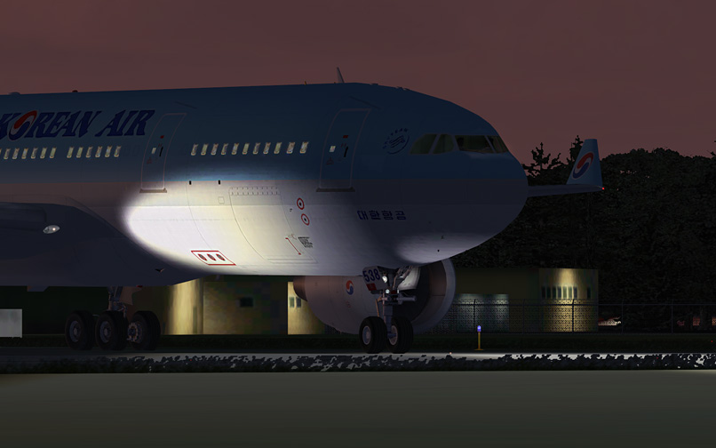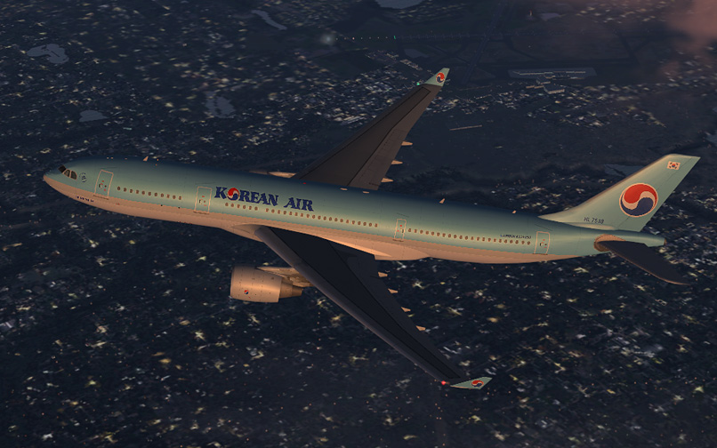 This Airbus A330-200 is a beautiful designed aircraft, the shape of the fuselage represents the A330-200 very well. The Fly into the sky! package contains two A330-200 liveries: Eva Air and Korean Air, but there are many beautiful paints downloadable from websites like AVSIM. The 2d panel is framerate friendly, but doesn't have a FMC. For full IFR flights, you need to use the default Carmin GPS unit. ILS Approaches are no problem, just enter the course/ILS frequency and use the LOC and APPR buttons. The virtual cockpit is a bit simple, only the most important systems are modelled. But it looks nice and is framerate friendly too. There is also a wingview model for even better framerates.