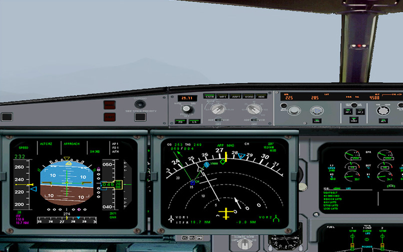 Many cockpit systems are simulated like Realistic EICAM and EFIS displays, GPWS, TCAS, etc. The functionality of the FMS is limited and can automatically read the IFR flightplan that you've created in FS. The flight dynamics are well balanced and the animations are very accurate. The autopilot is working perfectly, but the autoland function is too basic and does not support 'flare' and 'automatic autothrottle disengage' like you find on the PSS A330. So in short, there is no autoland function. With small icons on the 2d panel, you can switch between the virtual cockpit and wingview. There are a few extra features like a 3D pushback truck, air stairs, dynamic wingflex (the wings are moving up and down in turbulent weather), engine exhaust heat effects and more.