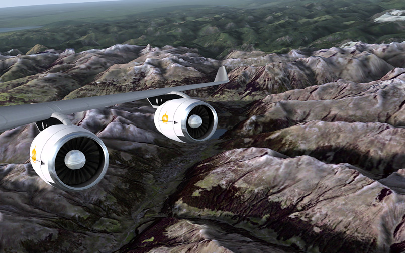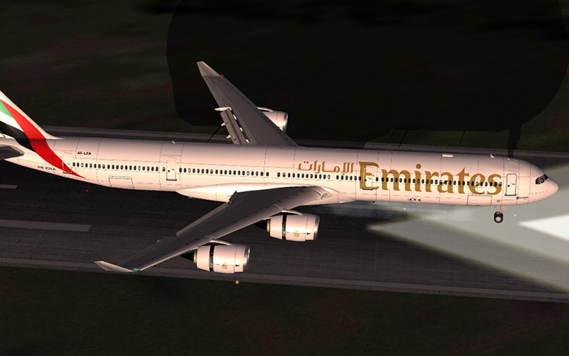 Like the other aircraft in the package, the A340-600 is not a work of art. The exterior model does not represent it's real world counterpart very well (just compare the screenshots with a photo of a real A340-600). The liveries are not very well done. For example, the clearly visible grey lines are not very appealing and there is no registration on the bottom of the wing. Also, some animations are off or are not present at all. The landing gear is floating at touchdown and doesn't have suspension.