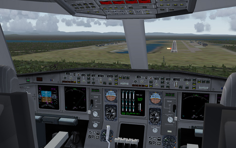 The flight dynamics are not bad, it is not very difficult to handle this A340. The 2d panels and the virtual cockpit are simple and don't look like the real A340 cockpit. Instead of typical Airbus systems, flap settings, auto brake, etc, many buttons and handles do look like (and work like) the ones used in the FS2004 default (Boeing) panels. Don't expect systems like TCAS and GPWS, those are simply not modeled. A simple FMC can be used to load FS flight plans and ute them in order to auto navigate on IFR flights.