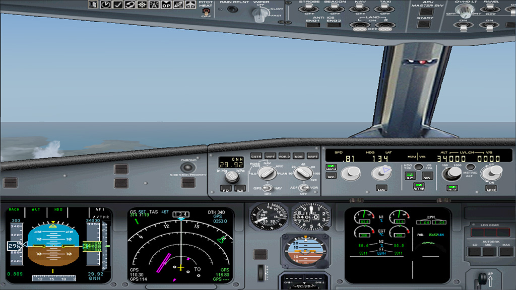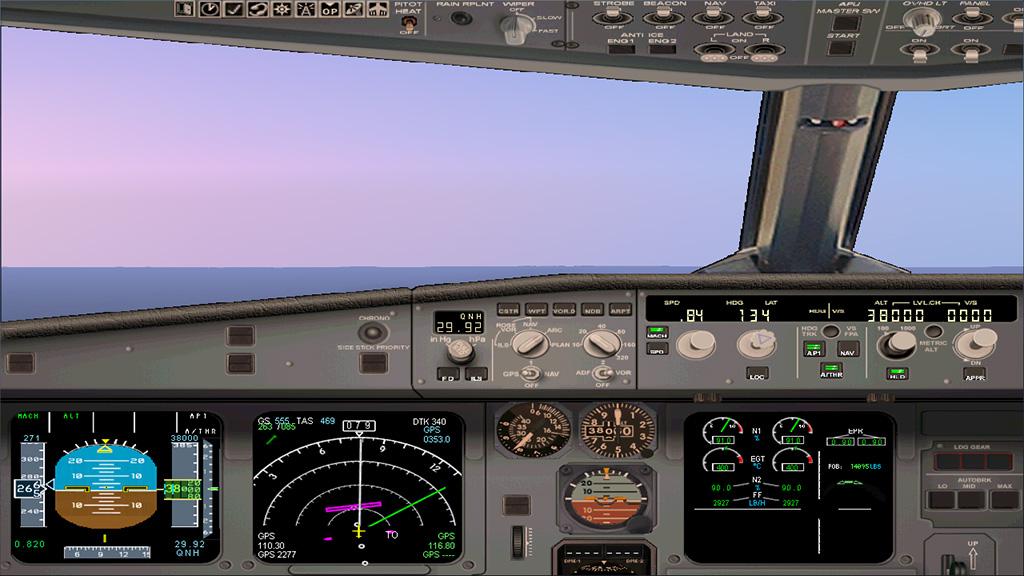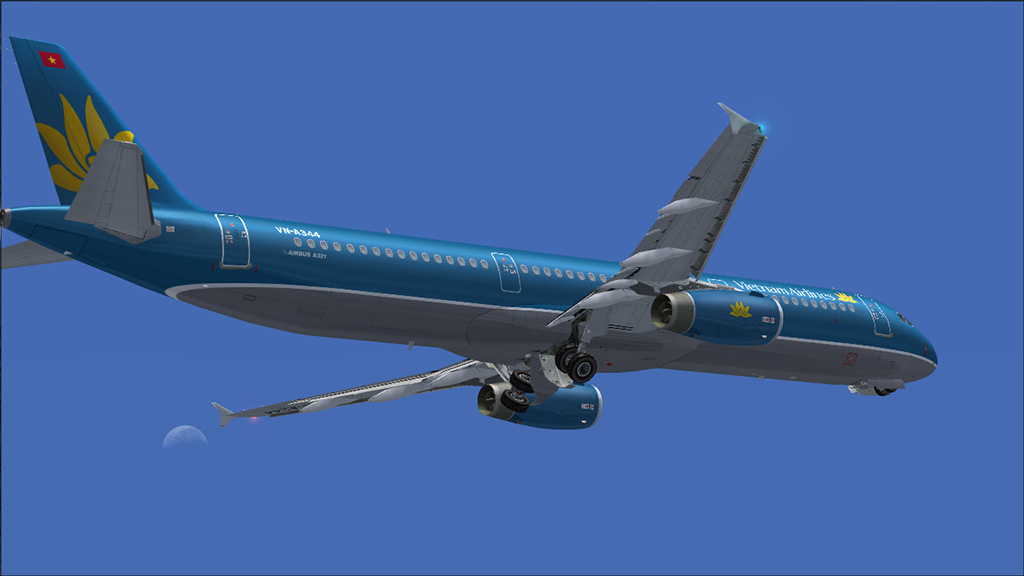 This Airbus A321 is a beautiful designed aircraft. The Fly into the sky! package contains two A321 liveries: Air Canada and Vietnam Airlines. The 2d panel is framerate friendly, but doesn't have a FMC. For full IFR flights, you need to use the default Carmin GPS unit. ILS Approaches are no problem, just enter the course/ILS frequency and use the LOC and APPR buttons. The virtual cockpit is a bit simple, only the most important systems are modelled. But it looks nice and is framerate friendly too. There is also a wingview model for even better framerates.