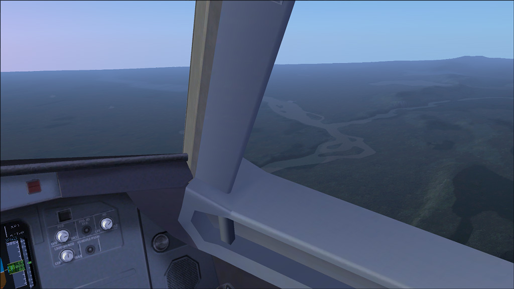 The flightdynamics are ok, but the ground effect is minimal, which can result in bumpy landings due to the little effect of the flare. Another thing is the main landing gear. Like almost all other overland aircraft, the main landing gear seems to float for a bit over the runway upon landing and finally sinks to the ground when rolling out. This is a common problem in FS, especially landing gear sets with four-wheel bogies or even more wheels. In this case the problem is present with two-wheel bogies.