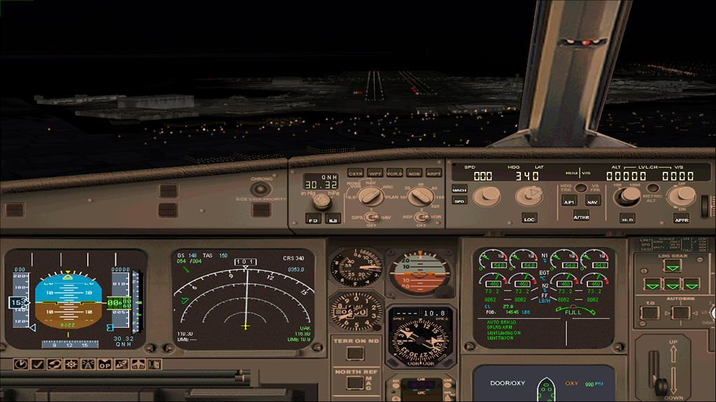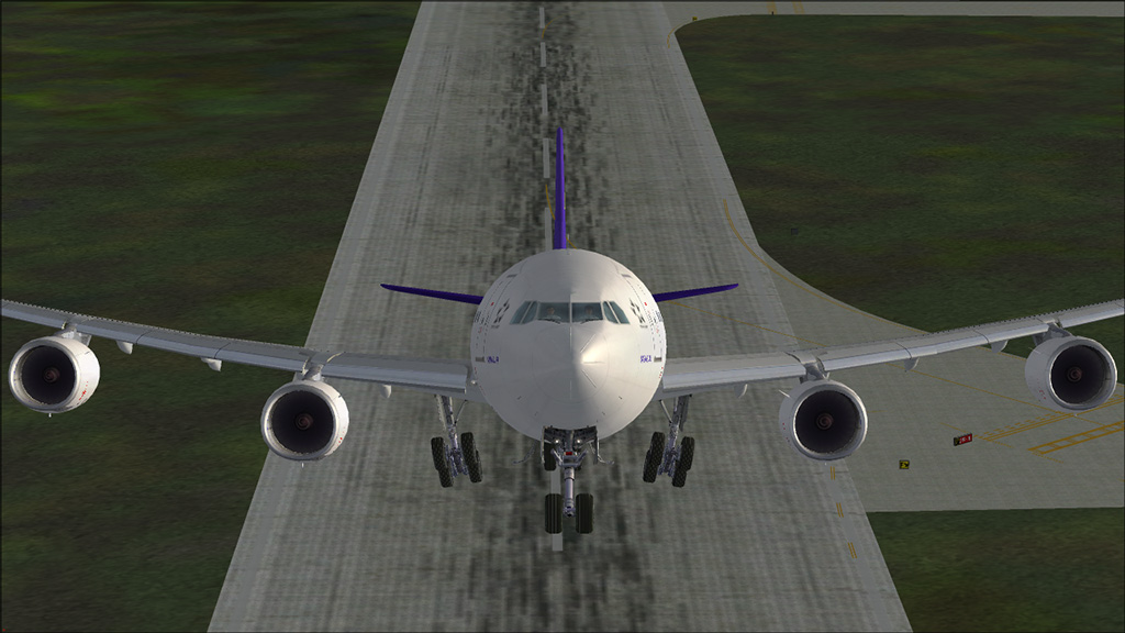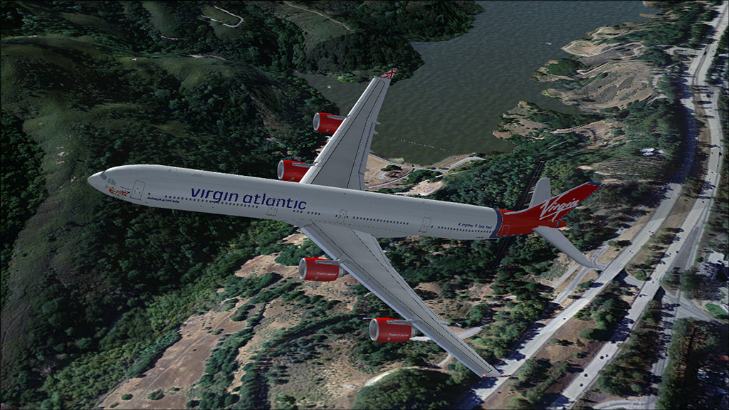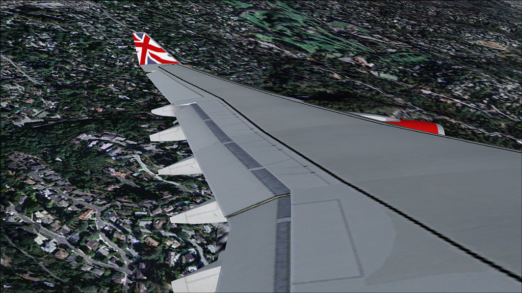 This Airbus A340-600 is a beautiful designed aircraft, the shape of the fuselage represents the A340-600 very well. The Fly into the sky! package contains five A340-600 liveries: Virgin Atlantic, Lufthansa, Thai Airways, China Eastern and China Eastern Expo 2010. However, there are many other beautiful paints downloadable from websites like AVSIM. The 2d panel is framerate friendly, but doesn't have a FMC. For full IFR flights, you need to use the default Carmin GPS unit. ILS Approaches are no problem, just enter the course/ILS frequency and use the LOC and APPR buttons. The virtual cockpit is a bit simple, only the most important systems are modelled. But it looks nice and is framerate friendly too. There is also a wingview model for even better framerates.