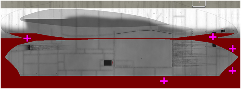Deselect and change the blending mode to "Multiply". Rename the layer to "Window dirt" and put the layer in the layer group "Windows". Use the Eraser Tool to adjust the dirt around the windows. Set the opacity of the layer around 10%, or anything you like. Finally, use the Polygonal Lasso Tool to select the wing part and feather to selection by 2 pixels. Then, delete the selection.