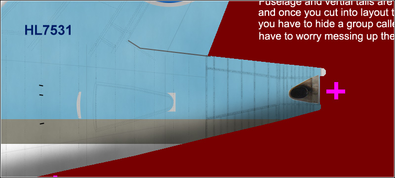 The tail is next. First, lets make it look a bit older. First you have to duplicate the layer "Tail logo left". Name the duplicate "Tail logo right". Flip the logo horizontal (Edit > Transform > Flip Horizontal). Make the layer invisible.