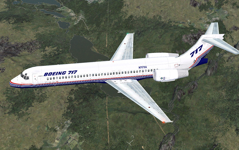 This Boeing 717 is the only freeware product of Jet City Aircraft. Like their payware products, this aircraft is detailed and flies very well. Many liveries are available on their support page. All the usual animations are present, including some special animations: Baggage carts and catering trucks appear when the doors are opened.