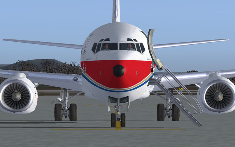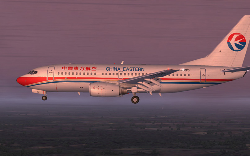 Like all aircraft in the Fly into the sky! package, this Boeing 737-700 is a beautifully designed aircraft and represents its real world counterpart well. The package contains only one Boeing 737-700 livery: China Eastern Airlines. The 2d panel is frame rate friendly, but doesn't have a FMC. For full IFR flights, you need to use the default Carmin GPS unit. ILS Approaches are no problem, just enter the course/ILS frequency and use the LOC and APPR buttons. The virtual cockpit is a bit simple, only the most important systems are modeled. But it looks nice and is frame rate friendly too. There is also a wingview model for even better frame rate.