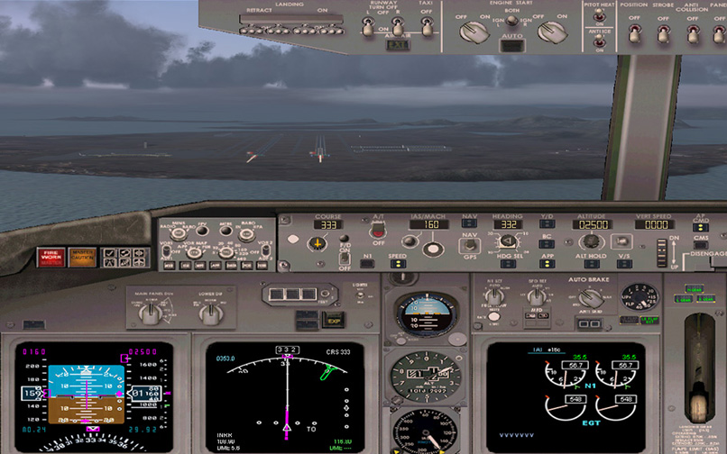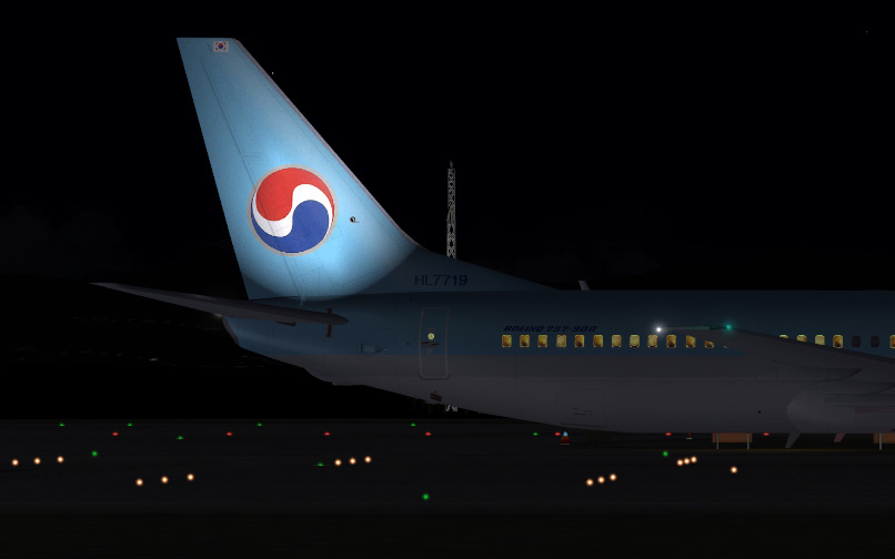 Like all aircraft in the Fly into the sky! package, this Boeing 737-900 is a beautifully designed aircraft and represents its real world counterpart well. The package contains only one Boeing 737-900 livery: Korean Air. The 2d panel is frame rate friendly, but doesn't have a FMC. For full IFR flights, you need to use the default Carmin GPS unit. ILS Approaches are no problem, just enter the course/ILS frequency and use the LOC and APPR buttons. The virtual cockpit is a bit simple, only the most important systems are modeled. But it looks nice and is frame rate friendly too. There is also a wingview model for even better frame rate.
