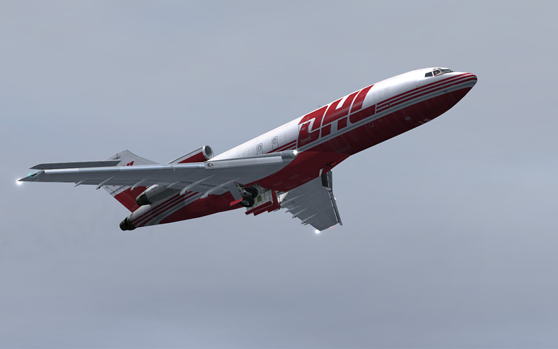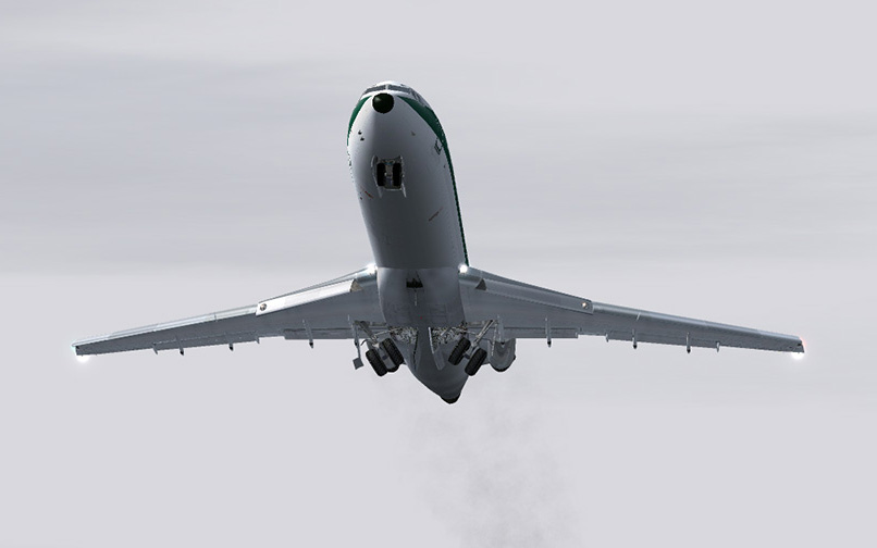 The flight dynamics are excellent. The control inputs are a bit slow, just like it should be on an old aircraft like the Boeing 727. Even the spool up time of the engines is slow, which is normal for old jet engines. Another thing about old jet engines is that they produce a lot smoke. This effect is simulated as well, the amount of smoke depends on the amount of thrust.