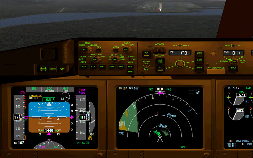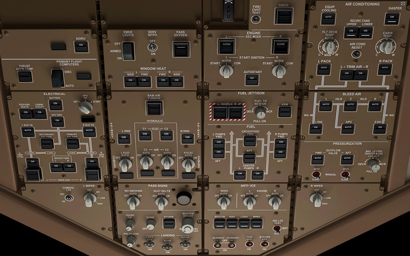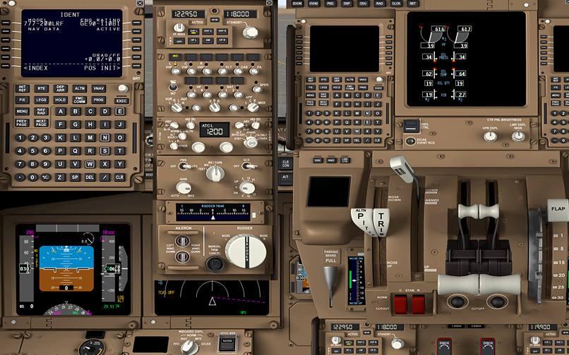 PSS is famous for their high quality panels. Their Boeing 777 is no exception, the panel and virtual cockpit are very detailed and realistic - all buttons in the virtual cockpit are clickable. Many if not all cockpit systems are modeled, including FMC, TCAS, weather radar, etc. There are animations like moving window wipers that can be seen in the virtual cockpit and the exterior view modes. However, the exterior model is not very well designed and the liveries (which are not free!) are not that good either. The package (Just Flight 777 Professional) contains the 777-200LR, 777-200LRF (Freighter) and 777-300ER.