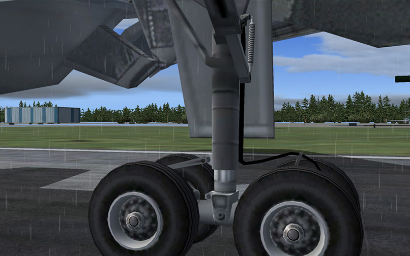 Like many aircraft developed by Aerosim, the virtual cockpit is quite simple. Not all buttons are clickable, 2d textures are used instead. On the other hand, a simple virtual cockpit is good news for your frame rate. The flight dynamics are ok and the aircraft is quite easy to fly too. All usual animations are present and everything works as it should. The main landing gear however, is not realistic, because it is not flexible. The rear set of wheels make first contact with the runway, then the forward set of wheels should come down too, which is not happening until the nose wheel comes down. Also, the pitch trim seems to be too sensitive, resulting in sudden pitch attitude changes while pressing the trim buttons.