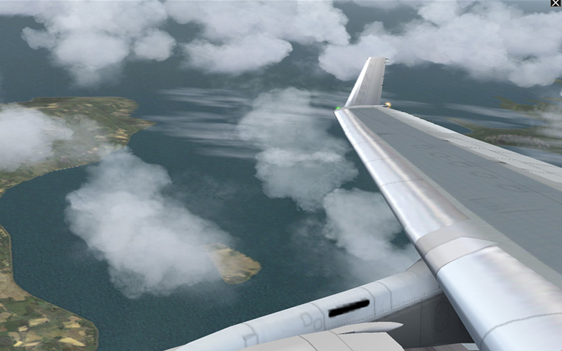 If you like to control the aircraft in the virtual cockpit, you'll be pleased. The VC looks very realistic and most of the buttons and handles are clickable. Many animations are visible, like a moving nose wheel steering, opening windows, moving windshield wipers and even the manual braking is visible on the rudder pedals! With a click on a button, you can switch on the HUD (Head Up Display) function (see screenshot #3), which can be useful during approach.