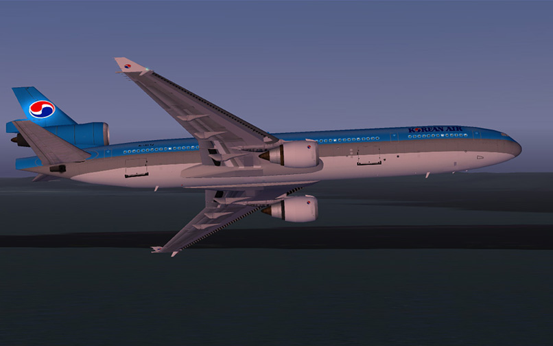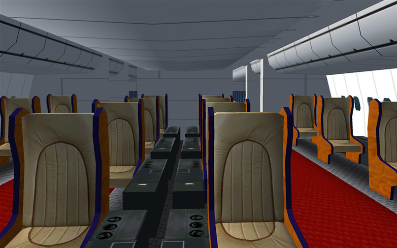 If you like realistic simulation of cockpit systems, you'll be disappointed with this package. The 2d panel looks simple and doesn't look like a MD-11 panel. Some of the gauges that are used are default gauges borrowed from various default FS2004 panels. The virtual cockpit looks simple as well, the same default gauges and low quality textures. A simple virtual passenger cabin is modeled in the virtual cockpit, but the wings are not visible.