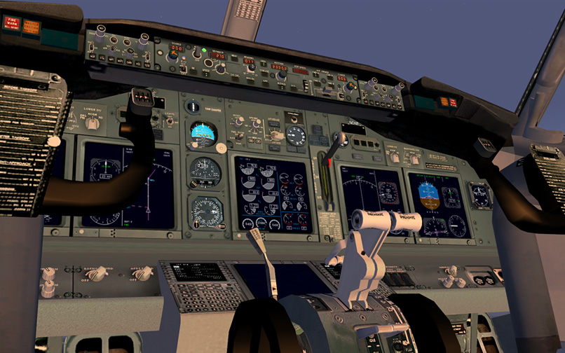 The virtual cockpit looks great, lots of details and animations like sliding deck windows with knot limit (84 knots) for window lock, moveable nose steering tiller, animated windshield wipers with rain glass wipe effect that shows �rain removed� on each sweep of wipers, moveable pilot seats, and more. Many if not all cockpit systems are simulated, like TCAS, GPWS, IRS, etc. It's all about realism with this package. For example, the IRS align takes some time and has to be done, otherwise you can't use the navigation system. Flap movement is also very realistic, it takes some time before you have the desired flap setting. Also, the flight dynamics are very realistic.