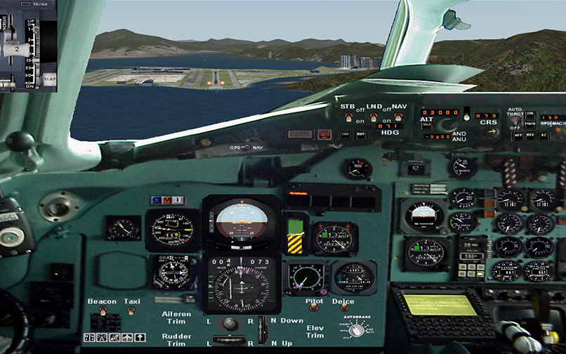 The NBP MD-80 is a simple, but frame rate friendly model. All the usual animations are present. The flight dynamics are ok, but a lot other things are not. The main landing gear is simple, floating on touchdown and doesn't have suspension. Also, the thrust reverse is not very realistic, when the thrust reversers are engaged, N1 is going up all the way to 100% (should be something between 60-70% N1) and the rudder is not very effective. Both the panel and virtual cockpit are very simple and do not resemble the real MD-80 cockpit. The two liveries in the basepack look alright but there are not many other liveries available on websites like the AVSIM Library. This aircraft will not work in FSX because the gauges are too old.
