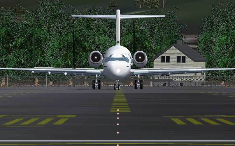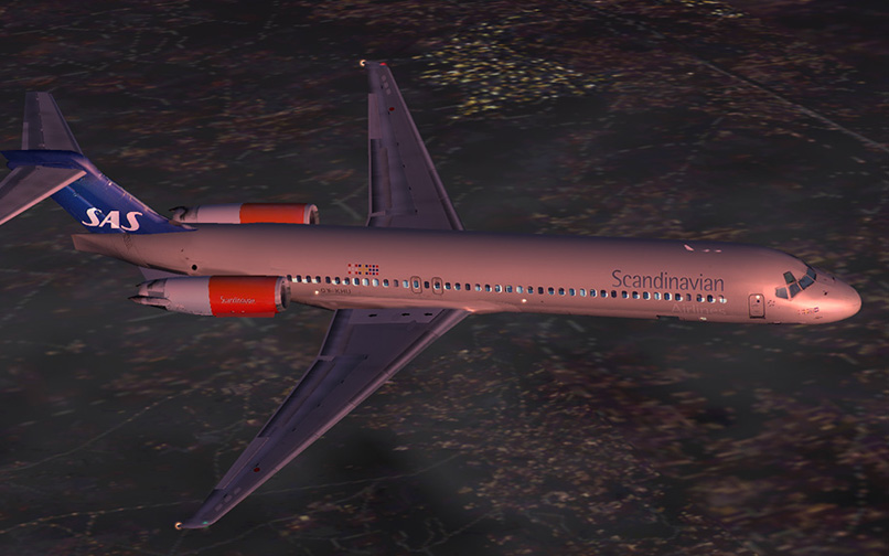 The SGA MD-87 is a good looking and frame rate friendly model. All the usual animations are present. The flight dynamics are quite good, its not very hard to control this aircraft, although the engine spool up time seems to be rather slow. The behavior of the main landing gear is realistic, but the retraction process seems to be too fast. Also, the thrust reverse is not very realistic, when the thrust reversers are engaged, N1 is going up all the way to 110% (should be something between 60-70% N1). With the wingfold command, a ground service vehicle appears and the rear stairs extend.