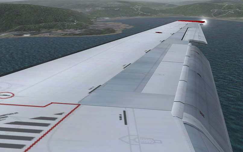 No panel, virtual cockpit or sound is included, so you'll have to use the default panel/sound or download a panel/sound package yourself. Another option is to purchase the Lago Maddog which panel and sound can be used in combination with the Jet City Aircraft models. The flight dynamics are excellent and all animations are accurate. The exterior is very well shaped and the liveries are high quality. With the wingfold command, ground service vehicles show up around the aircraft.