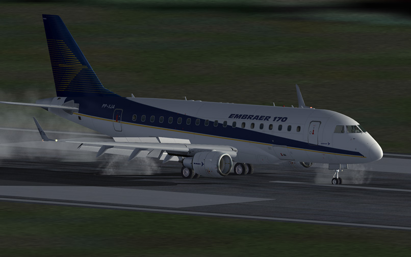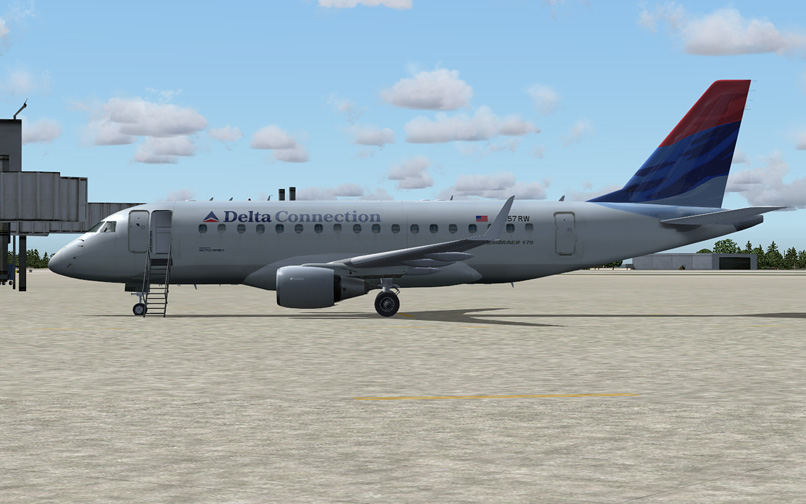 Dreamwings Design is developer of many regional aircraft for FS2004. Their Embraer ERJ-170 is a simple but frame rate friendly aircraft. All usual animations are present plus one opening door. There are no panel, virtual cockpit or engine sounds included. The main landing gear looks ok, but the suspension doesn't seem realistic: the fuselage is not moving up and down with heavy turbulence or a hard landing, but the wheels are.
