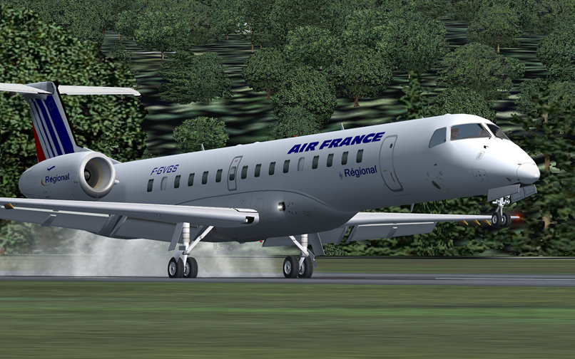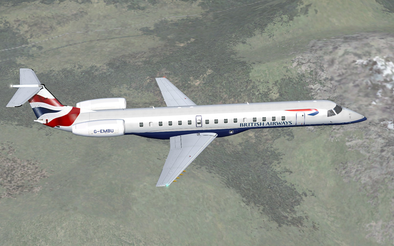 Dreamwings Design is developer of many regional aircraft for FS2004. Their Embraer ERJ-135/140/145 series are simple but frame rate friendly aircraft. All usual animations are present plus opening doors. There are no panel, virtual cockpit or engine sounds included. Various models are available: the ERJ-135, 140, 145 and the 145XR, plus models with air stair or sliding door. The rudder effect and landing gear animations are all ok, but the flight dynamics are not very easy. It is difficult to keep a constant decent rate on approach.