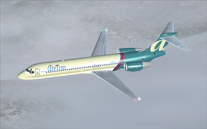 The Vans Aircraft Company Boeing 717-200 is a detailed model with panel, virtual cockpit, sounds and various liveries. The exterior looks nice, the liveries are of average quality. Quite a few systems are simulated, but not all of them. The EFIS screens look like the real ones at first sight, but some compromises are made. The map display is just a modified Garmin GPS unit and no TCAS or weather radar is simulated. There is also a FMC, but its functionality is limited and not realistic. The virtual cockpit is a bit simple, all buttons and knobs that are clickable on the 2d panel are clickable in the vc as well. No passenger cabin has been modeled, but just a 2d texture of a cabin, placed at the cabin entry door.
