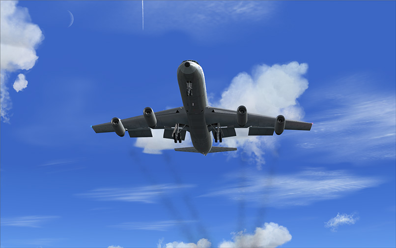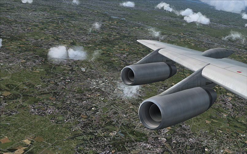 The flight dynamics are well balanced, everything works as it is supposed to. A 2D panel is optional, as are the sound packages. The panel and sound packages are also available on their website. Note that the 880 doesn't have the wings modeled in the virtual cockpit mode and the main landing gear is sinking a bit into the ground on takeoff and landing. The 990 doesn't have that problem.