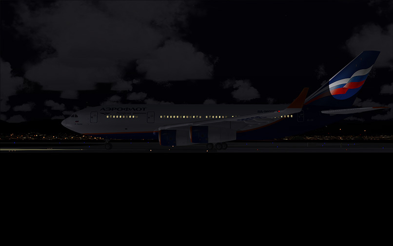 The Samdim Design Group is developer of various Russian aircraft for FS2004 and FSX. Their Ilyushin Il-96 is a freeware product, compatible with FS2004 and FSX. The exterior looks good and is very frame rate friendly. Only the aeroflot livery is included. Everything works well and all the usual animations are present. The 2d panel is very simple and build with a few FS2004 default gauges. The autobrake doesn't seem to work, as are the EPR values. The main landing gear looks nice, but the animation is not right. The wheels are sinking a bit into the ground on takeoff and landing. Also, the suspension is unrealistic, the wheels are going up and down, but the fuselage stays level. Interesting detail: the brake disks color red on roll out after landing.