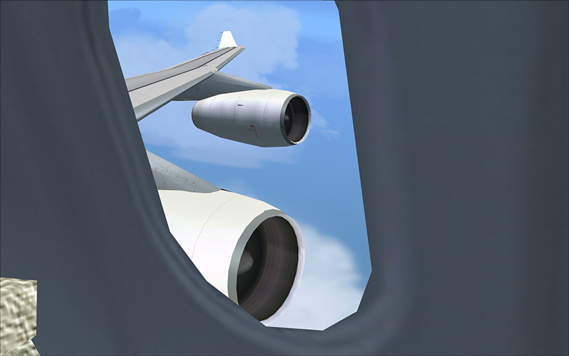 The base package installs the Airbus A340-300 including the Airbus house livery. The exterior looks nice and all usual animations are present. Note that this aircraft was originally developed for FS2002, so it's a bit outdated. The panel looks nice, but the functionality is limited. The virtual cockpit is simple, but it includes the passenger cabin and wingviews. Engine sounds are not included, the default learjet sound is used instead. The animation of the main landing gear is not exactly right: it's the common sinking/floating problem. Liveries are available in the AVSIM Library.