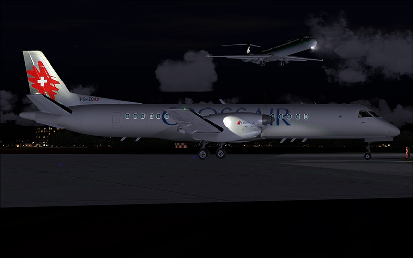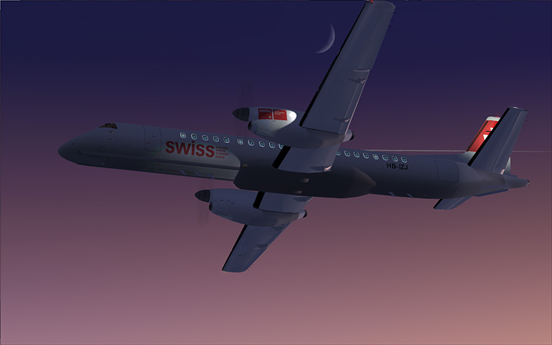 Blu Sky Mine Productions is a freeware developer of various turboprop aircraft for FS2004. Their Saab 2000 is a nice model with average quality liveries. The package contains a few liveries, panel and engine sounds. All animations seem to be accurate although the main landing gear is floating a bit on takeoff/landing. Some special animations are moving pilot heads, pushback truck and maintenance mode (see screenshot 1). The panel looks nice, but the functionality is limited. Only a few systems are simulated and the weather radar is actually not working, just a moving picture. An interesting bug is the pushback truck to appears to be stuck to the aircraft in the virtual cockpit mode. Only the "wingview" model seem to have that problem.