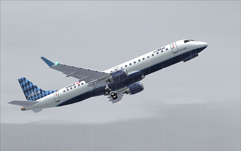 All usual animations are present, however, the landing gear is unrealistic. The wheels are floating on takeoff and landing and there is no suspension. Don't expect realistic flight dynamics either, a simple stall test revealed some unrealistic behavior of the aircraft. Too bad that there are no freeware alternatives, so for a nice ERJ-190, the Wilco E-Jets Series are the only option for now.