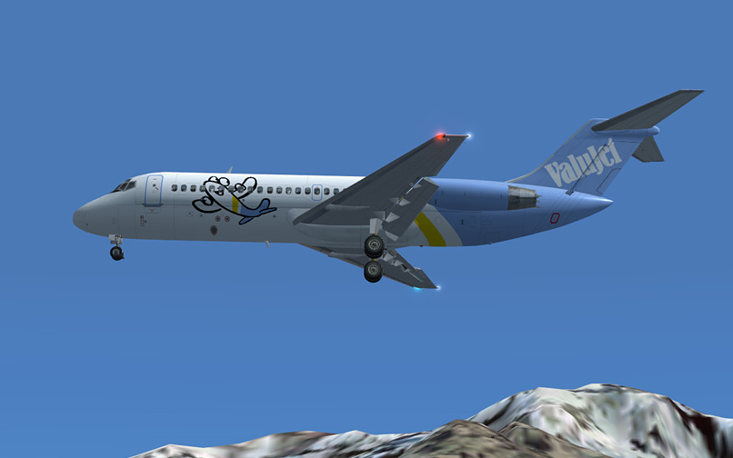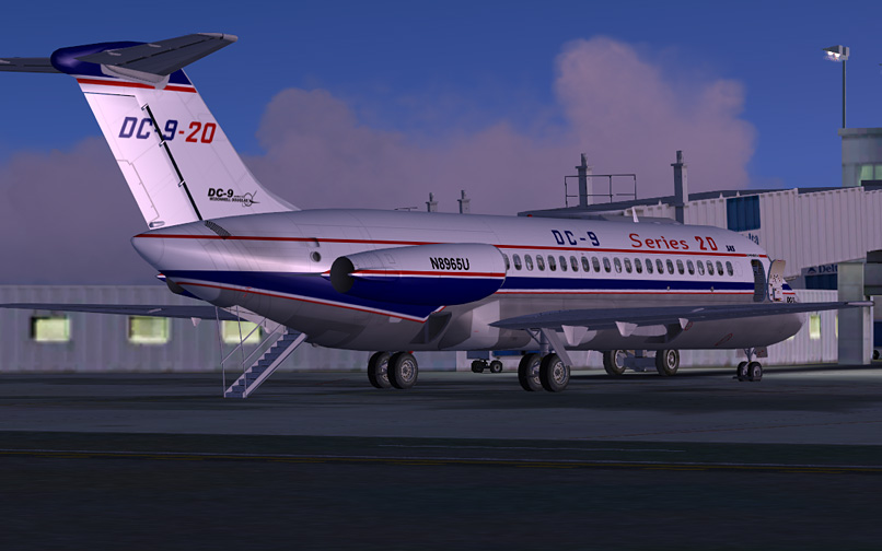 The HJG DC-9-20 is a good looking but simple model. Everything works like it is supposed to, although the animation of the thrust reversers is a bit too fast. No virtual cockpit or panel is included, only 2 P&W; JT8D sound packs, which can be downloaded separately. Those sounds are nice, but just not loud enough. The DC-9-20 and -50 variant are the only DC-9 models available for now. Other variations will follow.